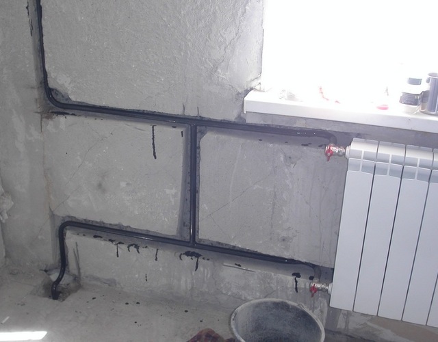 Квартира. Отопление. Стальные трубы (цельные, без соединений - на сварке) утоплены в стену. В итоге труб совсем не видно. Сложно, но это того стоит. Надежность предельная. Эстетика предельная. Удовольствие от созерцания ежедневно продлевает жизнь.